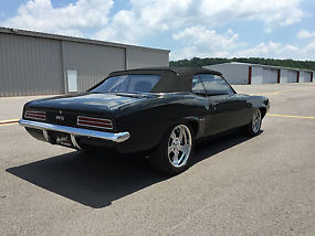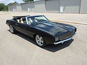 - 1969 CAMARO CONVERTIBLE. IF YOUR LOOKING FOR A NEW FIRST GEN CAMARO CONVERTIBLE THIS IS IT. THE BUILD STARTED WITH BRAND NEW DYNACORN GM BODY AND ALL OTHER BODY PARTS WERE PURCHASED NEW. EVERY NUT AND BOLT, WINDOW GLASS, SUSPENSION IS NEW. THE SUSPENSION IS HEIDTS PRO-G ON THE FRONT AND HEIDTS INDEPENDENT ON REAR WITH INBOARD BRAKES CHROME OPTION AND ALUMINUM CENTER SECTION. POWERED BY A NEW crate LS3 WITH 6 SPEED AUTO. CUSTOM INTERIOR WITH PAUL ATKINS 1959 IMPALLA DASH AND AUTO METER GAUGES. WE INSTALLED 6 WAY POWER SEATS WRAPPED IN BLACK AND TAN TOP QUALITY LEATHER. HAS KENWOOD NAV & DVD CD RADIO IN IT. WE ALSO INSTALLED VINTAGE AIR TO GO WITH THIS RIDE. IT HAS POWER WINDOWS & POWER TOP. THE CAR ALSO HAS AUTO RAD RADIATOR AND CORE SUPPORT WHICH HAS TWIN FANS. RADIATOR AND CORE SUPPORT IS ALUMINUM. STOPPING IT IS WILDWOOD BRAKES ALL THE WAY AROUND THE CAR AND STOPS GREAT. ALL LIGHTS ARE LED WITH DETROIT SPEED HIDE AWAY HEADLIGHT SET UP. THERE IS SO MUCH TO LIST ON THIS CAR I AM SURE I MISSED SOMETHINGS. THERE WAS NO EXPENSE SPARED ON THIS ONE. IT ALSO WON 1ST PLACE IN ITS CLASS AT WORLD OF WHEELS IN BIRMINGHAM, AL. THIS IS A REAL EYE CATCHER EVERYWHERE YOU GO. BID WITH CONFIDENCE AS YOU CAN SEE MY FEEDBACK. THANKS FOR BIDDING. ALL FUNDS WILL CLEAR BEFORE CAR IS RELEASED PERIOD. CAR CAN BE SHIPPED ENCLOSED FOR A FEE AND SERIOUS BUYERS CAN MESSAGE ME FOR A CONTACT NUMBER