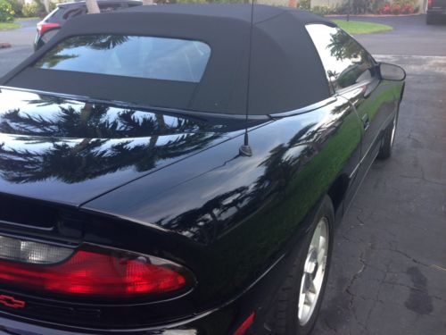 You're bidding on one of the nicest unrestored triple black 6-speed manual convertible 1996 Z28 Camaro you will ever see. Brand new convertible top with rear boot cover for when the top is down. This is an unmolested all stock Camaro Z28. Everything works, cold a/c, 4-wheel slotted rotors. Clean inside and out. Email any questions you may have and we'll answer. More pics available..