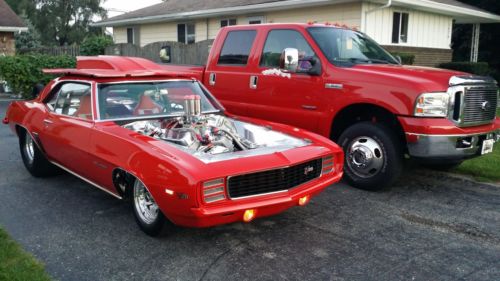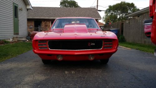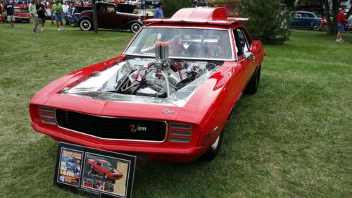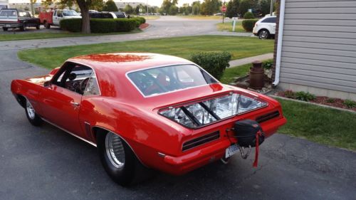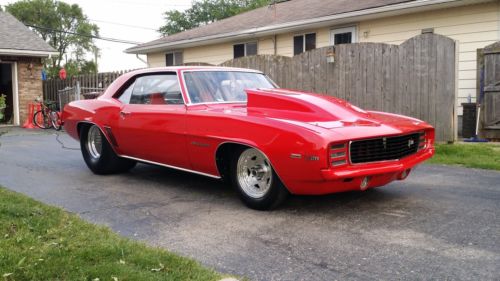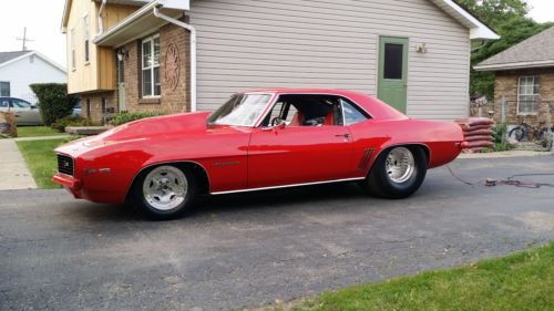 1969 pro street Camaro RS-Z-28. Full Mandrell square tube chassis. Car weight 2600 lbs. This car was a former fastest street car shootout car. It has a 555 Scott Shafiroff motor. Dart 360cc aluminum heads with 900+hp. Huge camshaft. 14 to 1 compression. TCI tricked out transmission. A real nice Coan 5000 stall converter. TCI pro tree trans brake. Custom take apart big tube polished headers. Moroso polished electric water pump. Power master chrome reversed alternator. All MSD ignition with a 7-AL-3 box and launch and rev control boxes. Flowmaster true 4 inch top ten race mufflers. Custom seats and custom sportsman roll cage. This car was a Super chevy magazine cover car. The whole complete interior is custom bead rolled polished stainless. The Centerline convo pro rims look almost new. The rims get polished at least 3 times a year.It has Goodyear 33 x 16 x 15 slicks. This is a street legal car. All the lights and blinkers work. Even has a full headliner with dome light. Everything is on a Painless wire toggle box. Plus there are multiple toggle switches on the custom dash. CE- Dana 60 rear end ladder bar suspension. Willwood four wheel discs. Cheetah scs shifter. All The windows are Lexan and most people don't even know. Except the door windows. They roll up and down. The body and paint on this car is in great condition. The paint is a corvette torch red. This car always stays polished and clean for the small car shows. Also for the big car shows. The car always stays covered in a climate controlled garage. Or in a air bubble. This camaro was voted one of the finest and cleanest pro street cars built. I can include a lot of the best of show plaques. Also first place pro street and first place race car awards. I also will include alot of magazines of this car. This camaro is a multiple super chevy award winner. It also won a super chevy best interior award. Even though the car is a former 8 second street car. I just take it to shows now days. What is great about this car is that you can use this on the street, or at the race track. Believe me if your ever in a judged car show, In the pro street class. You most likely will take first place. No matter if there are 2 cars in the class or 20. The workmanship and labor on this car is something to see. The low looking stance on this car looks so nice. Currently this car is printed on car show and swap meet flyers for advertising the yearly shows in Michigan and Ohio. This car does get numerous special invites to car shows every year, to display it. I know i left some goodies on this car out. Beacuse it would take up alot of space. If you have any questions about this car. Text -734-731-4230