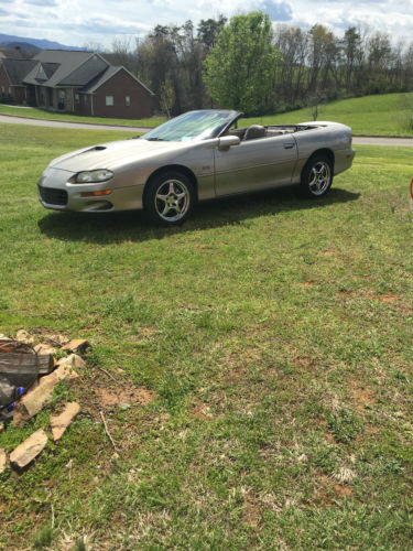 2000 Camaro SS SLP Convertible number 4981 rare only 154 pewter SS produced in 2000 SS model has black power factory top original no rips or leaks with tan leather interior has famous LS1motor with automatic transmission shifts perfect and firm has power windows, locks, and driver seat, power mirrors, cruise control has after market pioneer cd stereo, has rare factory chrome SS wheels in great shape with new nexen tires and front cross drilled rotors and newer break pads and has newer flowmaster chrome exhaust that sounds nice, car is in very good shape for being 17 years old normal wear its a great driver rated 7/8 runs great ice cold ac will freeze you out only 103000 miles low for 17 years old car is very tight and handles great on twisty tennessee roads. I have car insured at hagerty insurance in avg condition is 17800 my reserve is way below this these cars are going up in value quickly. I seen lower mile ones in mint shape 25000 plus you can enjoy this one and not break the bank and have same car and drive it and cruise in it daily if you like. Only reason selling want a newer vette