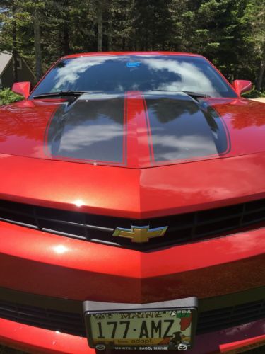 Cherry-red metallic exterior with grey-black racing stripes. Black cloth interior, immaculate. MANUAL. Two-door V6 coupe, 3.6litre engine, rear wheel drive. ABS, airbags, power everything. 4,985 mi. Always garaged. Never been in an accident. Still under factory warranty!