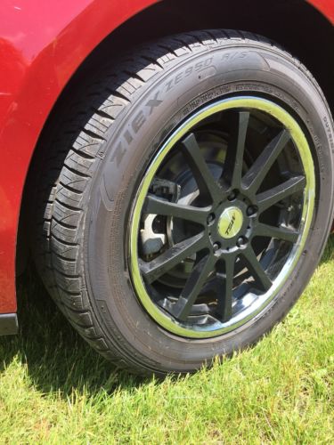 This car was built in July 2015 & bought in Maine in Nov 2015. The guy who bought it promptly got a hip bypass (so could no longer drive manual) & traded it in for an automatic after putting only 3,000 miles on it. He bought the car with standard tires and rims (see pic) - Goodrich Radial T/As and those matte silver rims. These have never been used / driven on, as the guy ALSO bought a full set of chrome-edged black matte rims (which look badass, btw) with Ziex ze950 all-season tires -- those are the rims/tires on the car since it rolled off the lot. You get BOTH when you buy the car.
