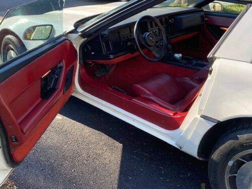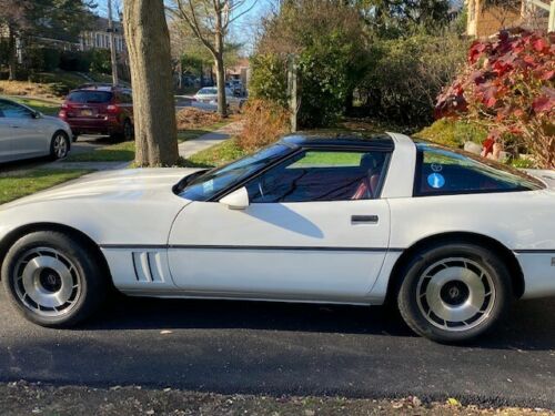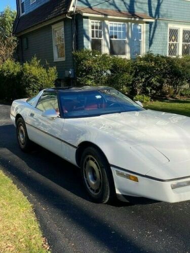 1984 C4 Chevrolet Corvette, Z51 Handling package. First year of C4 series. First year to have all digital dash! White paint exterior, red interior (original). Car runs well and is fun to drive. This car was kept in the garage upstate by my father-in-law who has passed away now. He drove it lightly over the 38 years, thus only 25,000 miles! New smoke coupe top. Some staining on the leather perforated seats you can see in the photo. Flip up headlights work fine. There is a paint issue which can be seen on right side around window in the pictures - the service station taped plastic over window recently while they were replacing door regulator but the tape was too strong and removed clear coat! Clean Title.