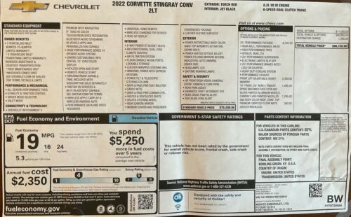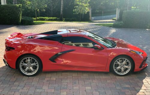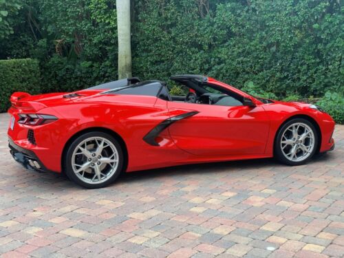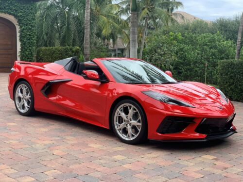 Only 65 miles! 2022 Corvette Stingray Convertible 2LT in Torch Red exterior with the Jet Black interior. Well equipped with the Z51 package that includes: Performance ratio rear axle, High performance tires, Electronic limited slip differential, Z51 performance suspension, Z51 performance brakes, Performance exhaust, Heavy duty cooling system and Performance exhaust. Also equipped with Front Lift Adjustable Height Memory, Carbon Flash-Painted Nacelles, 19" Front and 20" Rear 5-Trident spoke machined-face Sterling Silver painted aluminum wheels and Premium carpeted floor mats. This car CAN NOT be titled in California due to the California emissions laws or any other states that have strict emissions testing. This car is beautiful inside and out.