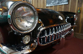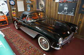 Beautiful example of a restored 1956 Corvette with the Dual 4 BBL option. This car has been driven 1400 miles since a complete nut and bolt restoration. The restoration was correctly done, using the original colours of a jet black exterior with a red interior. This '56 is an original automatic car, which is how its currently set up, but all the parts are included to make it a 3 speed standard if you wanted to. It has the rare power window option, as well as the factory hard top which is not shown in the pictures. The soft top has never been down even one time on this car, and is perfect and the window is crease free. This car is being offered at a price much below the cost to currently restore one today to this quality. I will try to answer any questions you may have about it. Viewing is encouraged and we will work with you to show the car to yourself or your representative at any time.