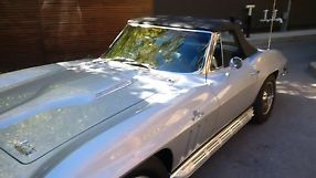 Here is an opportunity to own a true beast of a sports car that is ready to be driven immediately. It is a numbers matching 427 CI/ 425 HP engine with high quality silver paint and new black convertible top. This vehicle has had a substantial nut and bolt overhaul and the engine has been recently rebuilt. The leather interior is in VG condition, it has new carpet throughout and all controls , gauges and radio are in good working order. The tires are brand new and it handles very nicely. It comes equipped with the highly desirable knock off wheels and side pipe exhaust system that makes this big block sound and look fantastic. All chrome and glass are in excellent condition. This is a no excuses ride that you can drive anywhere or take to your local car show with pride.
