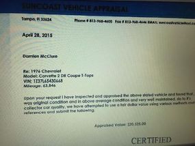 TO BEGIN: CAR JUST APPRAISED BY SUNCOAST AUTO APPRAISALS FOR $20,500.00(PICTURE ATTACHED)