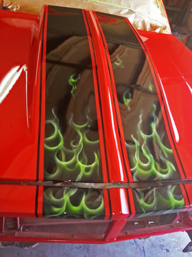New headliner, sprayed in bed-liner, New valve covers and air cleaner, Paint is about a year old, Not perfect but looks good. Rebuilt Edelbrock 1406 carb,