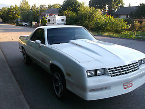 I purchased this car in the Washington desert outside of Yakima. It was original paint and exceptionally straight. I purchased it to make a white Choo Choo because I always wanted a white one and could never find one good enough. So $25000 later here it is. I have owned 4 Choo Choo El Caminos and know these cars well. I never liked the cheap hood scoops so I put a steel cowl hood on this one. The motor was great but I had a 50000 mile Cutlass with a 305 that I sacrificed just to have the best. I never went to a 350 because I have a heavy foot and not much self control. It is all stock with the exception of the air cleaner that fits in the cowl hood.