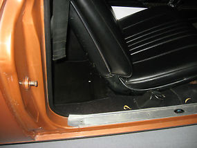 The exterior is finished in bronze with a black vinyl top and black rally hood stripes.