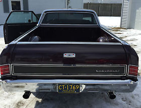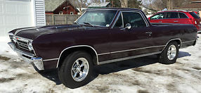 1967 Chevrolet El-Camino. Driven very little since complete restoration. Solid, straight, rust free car with show quality paint, chrome, interior and underbody. The floors of this car are almost as clean as the body itself. Royal Plum paint is clear and has very few flaws. The car runs and drives excellent with the 350/350 engine and trans combination and 4 wheel power disk brakes. The interior is fresh, beautiful and in excellent condition. Doors and tailgate open and close nicely and the gaps look good.