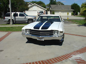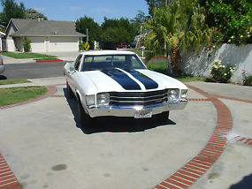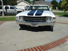 For sale is a solid 72 El Camino. Factory power brakes(front disc brakes), power steering, Ac car but ac components are no longer under the hood such as the compressor.Undercarriage is solid and rust free. 12 bolt rear end. New dual exhaust. Excellent running 350 engine. With a 350 tranny. Car runs and drives good. Nice driver quality car. Has a broken front turn signal lens, but I will be replacing both of them with new ones. All lights and guages work on the car. The interior is also in nice shape also no rips or tears. Clean title. Car is being sold As-Is with no warranty and is the buyers responsibilty to check car prior to bidding. Car is Located in Los Angeles and has a clean CA title in hand. I have sold a couple cars to overseas buyers and out of state buyers in the past and can offer to deliver the car to any of the shipping companys here in southern california or can give you the numbers to a few shipping companys ive used many times with no issues. Ive sold alot of classics and most of my cars end up selling before the auctions even end so i have the right to end the auction early if the car sells locally. IF YOU HAVE ANY QUESTIONS YOU CAN CALL ME ON MY CELL AT (714)-401-3854 thanks Reserve is reasonable on this car.