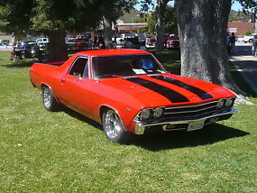 FOR SALE IS MY 1969 EL CAMINO RESTOMOD. FULLY RESTORED AND CUSTOMIZED IN 2013. DRIVEN ONLY 6K MILES SINCE RESTORATION. SHOW CAR OR DAILY DRIVER. IT IS A SHOW WINNER CAR.CAR IS A RUST FREE CALIFORNIA CAR WHICH WAS STRIPPED DOWN TO BARE METAL AND PAINTED A VIPER RED WITH BLK STRIPES, CUSTOM GHOST FLAMES, CUSTOM INTERIOR WITH BUCKET SEATS AND CENTER CONSOLE, ALL LEATHER, TILT STEERING AND VINTAGE A/C SYSTEM. CAR HAS POWER STEERING AND POWER DISK BRAKES. THE MOTOR IS A BUILT 400HP 1969 4 BOLT MAIN 350. 700R4 TRANSMISSION, SERPENTINE KIT, RON DAVIS DUAL FAN ALUMINUM RADIATOR AND A LIMITED SLIP POSI DIFFERENTAL WITH 373 GEARS. IT HASSANDERSON HEADERS W /2 1/2" PIPE AND FLOWMASTER MUFFLERS. THE SUSPENSION IS CPP TUBULAR CONTROL ARMS UPPER AND LOWER, FRONT AND REAR. 2" DROP SPINDLE AND COIL SPRINGS AND UPGRADED SWAY BAR IN FRONT AND REAR AND AMERICAN TORQUE THRUST WHEELS. THIS CAR RUNS AND HANDLES FABULOUSLY. FOR MORE INFO PLEASE DON'T HESITATE TO CALL ME.JIM at (818)259-7812