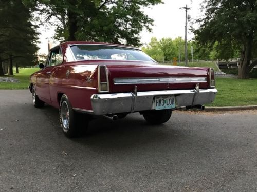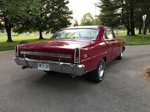 1966 Nova 2-door hardtop (non ss) in nice driver quality condition. I will describe it to the best of my ability having restored and sold several muscle cars and hot rods (just don't like surprises). It is an original 327 v-8 car with a 700-R4 transmission, power brakes front, manual on rear, no a/c with all original sheet metal (southern car), and one re-paint app 9 years ago back to original color number match but seems to me to be a shade off but does have a lot of clear and shines very well with some imperfections (10-footer). The car runs, drives and sounds very good with no rattles, shakes or noises, it's a real dependable car. Has a great stance and is very straight down the sides (no waves). Has average to nice era correct interior with no rips or tears and a nice headliner and dash. Has a few bubbles starting at the passenger rear quarter and a couple on the rocker but not bad at all (shown in pics). has always been garaged and well kept. State inspected and has been driven and enjoyed. Just a good little muscle car. There is no warranty of any kind but I do welcome all inspection.