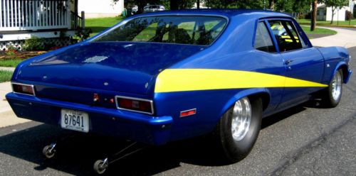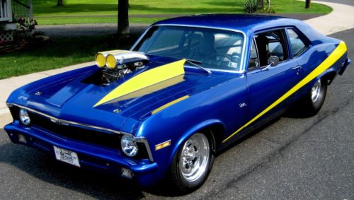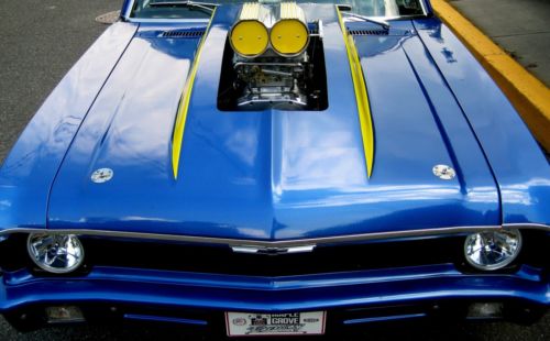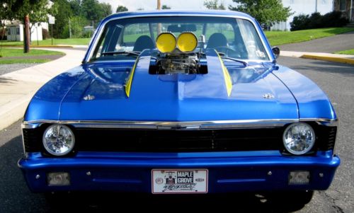 You are bidding on a stunning 1972 Chevy Nova Pro-Street that was treated to a full Pro-Street Resto garage kept kept since completion is street driven to local events. It has an arrow straight body. A rock solid chassis, sub frames, floors, trunk pan, etc. The time and effort that went into building this Nova is evident throughout in the quality of workmanship, parts, and materials used to completely bring its beautiful condition. If you have been searching for just the right Turn-key Nova Pro-Street Pro-Built here are more details.