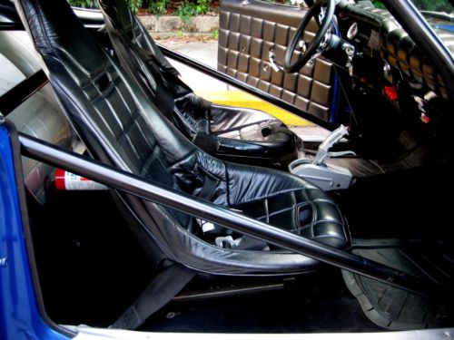 An arrow straight body with stunning Custom Paint Blue Metallic. The paint shines like a polished Blue Diamond. Chrome Racing wheels with 33x21.50-15 Mickey Thompson's on the rear. The black interior has been redone is a pleasure to see with Pro installed 10 Pt. Roll cage, Racing Buckets w/Harnesses, Tach, Gauges lots more. Under the hood is the awesome roller 355 V-8 with 671 B&M Blower and dual 750 Holley's all the goodies. Let the pictures speak for themselves as you can see. The undercarriage is whistle clean. Mature grandfather adult driven never molested or abused. It is well preserved before and after the completed Pro-street restoration due to careful indoor storage thru the years.