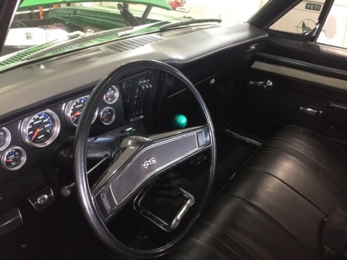 1969 Chevy Nova SS. 68,000 original miles. Rally green paint. 383 stroker motor. Dart pro 1 heads. Msd ignition. 4 speed manual trans. Original 12 bolt rear end with factory gears. Custom gauges. Coil over front suspension. Custom exhaust. Frame has been tied. Have original protect-o-plate. Interior is clean. Some minor blemishes in the paint but car is rust free. Feel free to ask any questions. Car is also available to view if you wish.