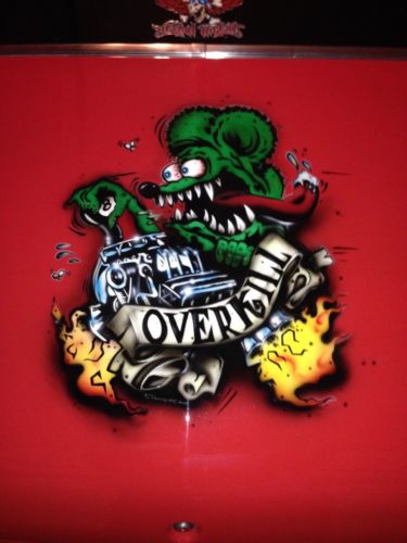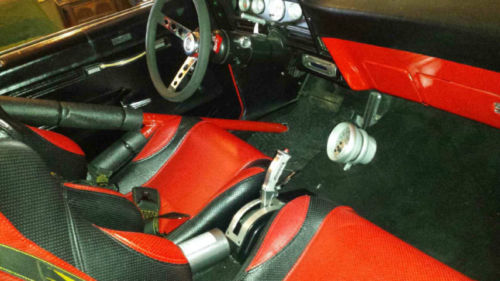 As stated earlier, the car was taken off the frame and completely taken down to bare metal to ensure there were no issues with the paint. The frame was upgraded to a pro-street set up in order to be able to withstand the amount of horsepower this car produces and to also accept the tubbed rear end. The car and frame were painted the beautiful red color that it now maintains. The under side of this car is as pretty as the body. Take a look at the undercarriage photos and you can see the detail and care that was taken in restoring this car. The rear end has been fully tubbed to allow wider tires in the rear end. All of the weld seams were filled so the frame appears totally smooth and weld free. The interior was fully restored also to not only provide looks that accent the vehicle paint but also to provide safety and comfort. When the paint job was complete the custom designed "Rat Fink" that you see on the trunk lid was professionally airbrushed on. As you can see it is beautifully done and really sets the car off. The full roll cage has been painted the car color and the four point harnesses provide safety for the driver and passenger. The custom instrument cluster includes brand new gauges which really highlight the interior.