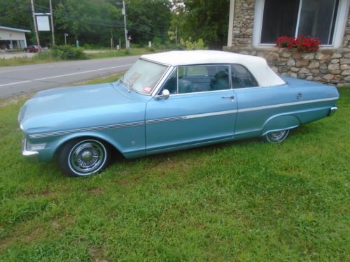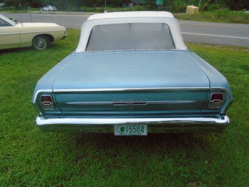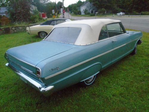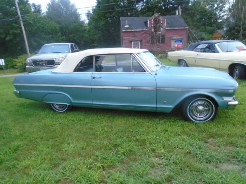 This is a very nice looking and running 1963 Nova Convertible. It has its original great running 6 cylinder with automatic. The floors and frame are and always have been nice, interior done over years ago, top fairly new and new WW tires. I installed new manifold gasket, outside side window rubbers and a new rear bumper. The car runs and drives very nice and looks great with its skirts.. As you can see the car is registered and driven almost daily. Any more questions call me at 603-617-6160 ASK ANY AND ALL QUESTIONS BE FOR BIDDING..
