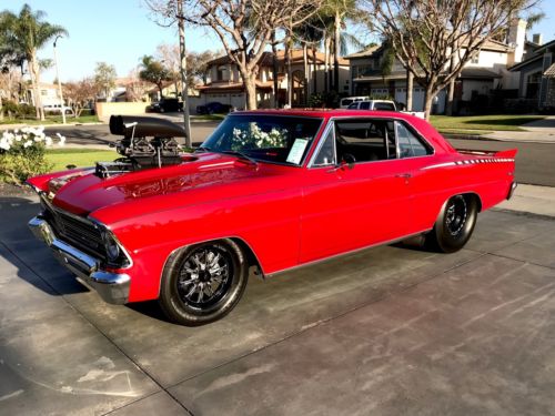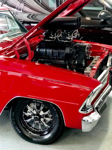 1967 nova 406 dart block , Howard crank , Howard rods, Howard custom grid roller cam, jesal rockers . JE pistons. RHS pro heads . new 671 blower , all is themo coated . new tci trans and ATI 3800 stall . LPW ultimate -12 rear with 430 pro gear . car runs on E -85 over 800hp 12lbs boost . its all sorted out , goes fast and straight , areo brakes on 4 corners. RC comp wheels . 31x16.5 rear tire. please call or text for more photos or videos 818 430 8766