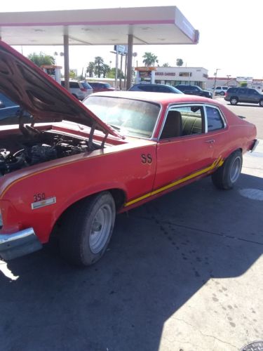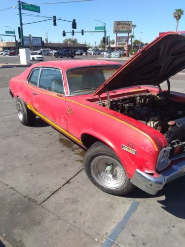 I have a 1973 Chevy Nova for sale, a true American classic. It's a 350 car with a mild cam,hooker headers, Edelbrock semi hi rise intake,valve covers and a big carb.carb was just rebuilt and motor runs strong. No overheating,idles perfect and I just had the transmission fully rebuilt last week as well. It has a fully transferable 2 year warranty as well. I got all the hard stuff done and now it's time to finish to your liking.doors all open and close fine,hardly any rust except by back taillights. It has nice centerline wheels and chrome traction bars too! It's not perfect obviously but with it finished and looking good they go for 12 to 20k+. I have a clean clear AZ title. Sold as is obviously cause it's a old car but come look for yourself and drive it! This is a no reserve auction so have fun bidding and win a classic cheap!!