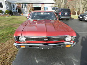 Take a look at this beautiful 1972 Chevrolet Nova brought to you by CARuso Classic Cars. This Original Numbers Matching beauty is spotless. This Nova is a Clone SS. This car is from the Factory with 4 Speed Transmission. The 350 2bbl V8 Engine is immaculate. with chrome accents. Dual Exhaust. 373 Gear Rear End, 2” Steel Hood Disc Brake, and all Fluids have just been done. There has been 1 Repaint to Burgundy Fire. The Interior has Black Bucket Seats all in Excellent Condition. The owner personally rebuilt the Motor and Transmission. The car is not flawless but is very close to it.