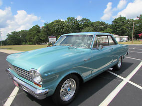 Up for your consideration and at no reserve is this amazing 1964 Chevrolet Nova SS Coupe vin# 40447N173134. This beautiful Nova is painted Artesian Turquoise and was featured in Chevy High Performance magazine back in 1991. It was owned then by Mr Chuck Conaway whom was also featured in the article. The current owner purchased the car in 1997 at a Super Chevy show in Commerce Ga. The car came with a signed copy of the magazine. Sadly, the current owner has passed last year and his wife has asked for our help finding a good home for the Nova. This car has been tweaked back to a more street able car since the article was written. The current configuration features a high performance GM 350 4 bolt crate motor with Hooker fender well headers and 3” Flowmaster exhaust. Has MSD ignition and Malory distributor. The transmission is automatic with 2800 stall and cheetah shifter. The rear end is a 8.5 Auburn unit – 30 spline M\E race axles and 3:73 gears. Front brakes are Wildwood Heavy duty discs. Rear are new GM Camaro drums. This car is in excellent condition with no rust. The paint is older but high quality and in excellent condition. The interior is very clean and very nice condition. The car runs, drives and sounds amazing. It has a fairly nice cam lick but holds a solid idle at the red lights. The car sounds mean and is a no apology classic that will fit in at any car show or cruise in. Please review the current pictures supplied and feel free to call and ask all the questions you wish. This is a nice car.