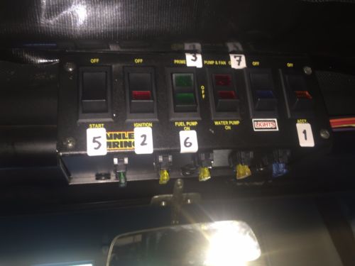 -- Main switch board Painless attached to Roll Bar by Visor drivers side. ( Fused ) $450.