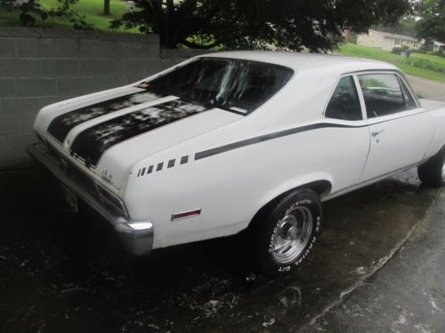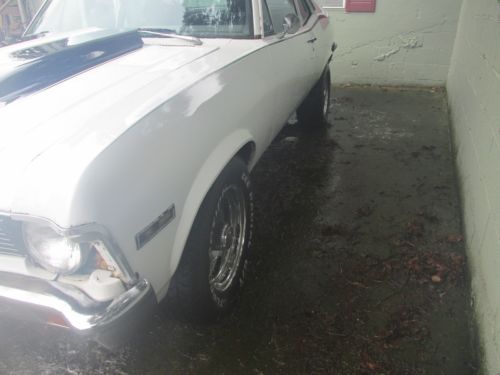 The item you are bidding on is a 1971 Chevy Nova. I bought the car from a friend who had to downsize so I know some about the car but not a lot. Here is what I do know, it has an 350 cid probably early 1970's that was rebuilt into a 383 cid stroker. It has headers Weiand aluminum intake Holley Carburetor double hump heads upgraded distributor etc. I was told it was 450+ horsepower but have no way to prove that. It has a Turbo Hydramatic TH350 and a 10 bolt posi-traction rear end and was told at some time both were rebuilt. It has rally wheels and decent tires. It starts stops and turns but past that I can make no guarantee (I would have a look inside the motor before I drove it very far, pull the intake and heads). I have only driven it about 1 block, it is loud (3" stainless exhaust) and must have quite a cam in it. The engine needs at least a really good tune up, but you know how hot rods are, anything can break at any time. I would consider this car to be a "RUST BUCKET" not a candidate for restoration. At some time the previous owner had heavy duty rectangular stock steel welded from the front sub frame to the rear bumper. The rear leaf spring mounts were rusted out so they were fabricated (I use the word loosely) to keep everything in place. I know he put more into the drive-train than I am even asking for the entire car. The interior is awful with late model bucket seats, also it use to be auto on the column and was changed to the floor, the shifter is crap. If you are looking for a good example of a Nova please keep looking, this is not it. If you are looking for a neat looking fun car that might be fast after you sorted it all out then maybe this one is for you. There is no warranty implied or expressed so please do not bid unless you are sure, smart money would run from this car. Shipping is all up to you, you must arrange and pay for it yourself. I will be glad to assist on my end to load it. You really should see the car before bidding, easier said than done in most cases. I have no reason to believe it is an SS, just a base car. One more thing it was raining when I took the pictures so the paint looks better than it actually is, also several pieces of exterior trim are missing, rear window reveal, headlight doors etc. P.S. I just drove it a little ways up my driveway and found out the front tires are too wide to turn without rubbing so I will throw in 2 plain steel rims with tires and put the Rally's in the trunk when shipped. One more thing, I noticed the engine power was not getting to the ground when i went up my driveway, my guess is torque converter, but it could be anything, thanks again, Paul.
