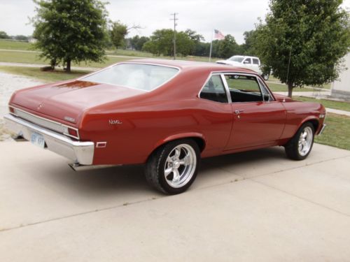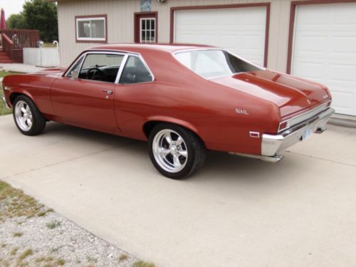 1968 Chevy Nova-350 motor (very mild streetable cam) 350 turbo 10 bolt chevy rear end. Power Disk brakes on front-drum on rear Car is very dependable and a very solid car. Not a show car at all. It has been driven and does have a few chips in the paint.. I would rate the paint a very solid 7 out of 10. Drive the car home. I do reserve the right to end auction at any time as I do have it for sale locally for the same price as the buy it now. I do not answer text messages. If interested CALL Don at 620 820 9410 Car rolls and 17 inch American racing wheels and it does have Power Steering. The gentleman I bought the car from was in the service and the car had been in storage for a long period of time. Therefore the motor department does need to be detailed out. Car runs and drives 100 per cent. Please look at my other auctions.