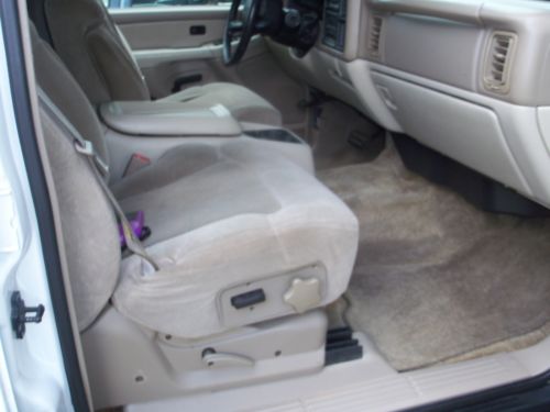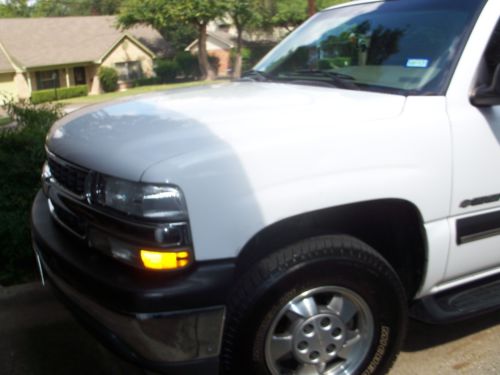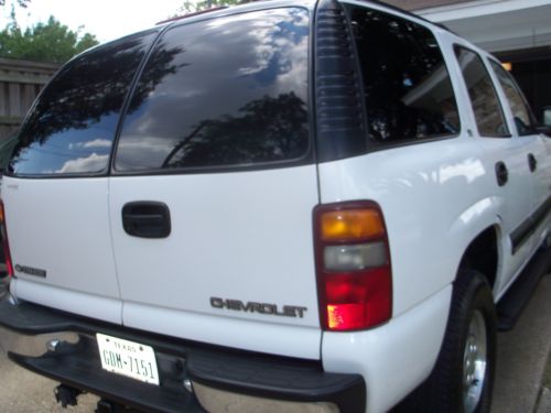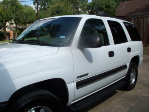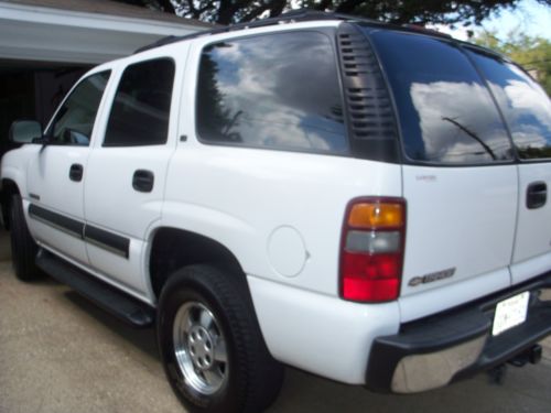 2002 Tahoe 2 WD , Vortec 5300 V8 SFI Gas Engine , 4-SPD Automatic Transmission , Summit White Tan Interior Trim ,6500 lbs GVW rating, fuel injection, automatic 4 SPD Electronic Trans, catalyst , feed back fuel system . Bought this truck used from CarMax in 2010 . Truck has ran great all these years. This Chevy Tahoe is very Clean and well maintained. Truck was garage kept. The interior is near perfect. A/C , front and back works on all speeds, seats are in good condition. The driver seat has some wear. The body of the truck is a 9 out of 10 with only a few dings. The engine brakes suspension are in excellent condition, bought new tires in Dec. 2016 . New Battery Sept. 2017 . The Tahoe has pass MD inspection. Truck has front and side impact air bags, 4 wheel disc brakes with ABS, power door locks , daytime running lamps, automatic headlamps, theft deterrent ignition, childproof rear door locks, power windows , power driver and Cloth passenger front seats, front and rear air conditioning , AM/FM Radio with CD player, Tilt Steering Wheel, Cruise control, Roof Mounted luggage carrier, Rear window defogger , side mounted assist steps, ( Running Boards ) , carpeted floor mats, underbody mounted spare tire, front bucket seats w/ console, inside mirror w/compass and temp, powertrain/ chassis features, auto trans with tow/haul mode, 16" tires and aluminum wheels , load leveling shock absorbers, extended life engine coolant , trailer wire harness, stainless steel exhaust. Truck is ready to drive on a road trip or anywhere you choose to go. $500.00 deposit due when you win the vehicle, full payment due when you pick up the truck at my location. You can send a cashiers check for full amount for delivery. Delivery charge will be a additional $200.00 . Thank you for looking.