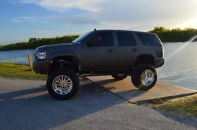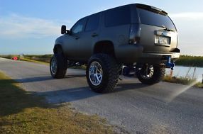 The Tahoe was wrapped 3M Charcoal in December of 2014 and it is in excellent/mint condition, the 22x14 American Force Burnouts were built/installed in November of 2014- all wheels are mint. The 40 inch Toyo Open Country's have 75-85% treadwear all-around remaining and have been rotated regularly. The truck sits high on a custom King 2.5 Coilover Setup w/Adjustable External Reservoirs and complimenting air shocks, a Fabtech Lift, the Cognito Motorsports High-Performance Steering Assembly, a Signature Weld Body Lift, and hand-made 6061 alumnum coil-spring spacers. Every suspension piece, Chevy Bowtie,and entire rear axle is powdercoated "Candy Cobalt". The black leather interior and carpeting is in excellent condition, the audio system is all JL Audio C5 Door Speakers w/ Tweeters and (2) 12-inch w7 Subwoofers in the trunk. I replaced the factory radio with an iPad II (with internet) which plays via Bluetooth through the factory controls (its awesome having Netflix). Truck has over $50,000 invested with all receipts present! Every suspension component has been cryo-hardened and forged at 300Below Inc. in Decatur, IL!
