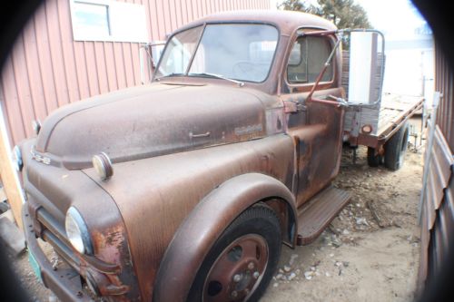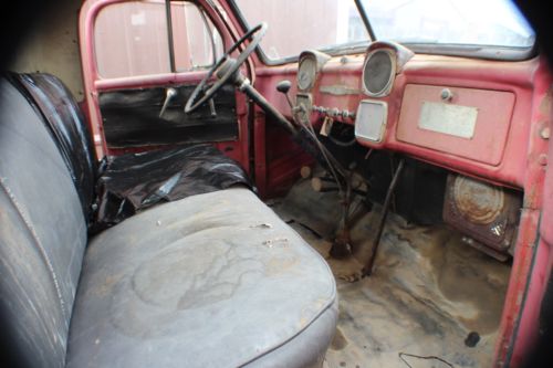 This truck has 51 thousand miles since new. A good restorable truck. Was running perfect 10 years ago when I parked it. I put 2 new 8.25 X 20 front tires on it last summer, thinking I would restore it myself, but after having a heart attack I decided to let someone else finish it. The wood deck on the 13 foot flat bed is shot and will need to be redecked. There are three small rust spots that need to be repaired before repainting it. The only bad glass is the door vent windows. It has a 5 speed transmission and a 2 speed axle.