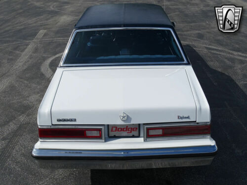 Gateway Classic Cars of Orlando is proud to offer this 1984 Dodge Diplomat Salon. This car will take you back to the '80s. Painted in a beautiful white with a blue Landau roof. Adding to the look is a set of wire wheels wrapped in radial tires. The paint looks great and the blue cloth interior looks amazing. It is powered from a 318 CID V8 (5.2L V8) engine that has 130 horsepower and 235 lbs. of torque and is backed by a smooth-shifting 3-speed automatic transmission. This Diplomat has 47,515 miles .The power disc brakes and power steering aid in the easy driving experience. Inside you'll find cloth seats, plush carpet and matching headliner. The CarFax is clean with no accidents. Options on this 1984 Dodge Diplomat Salon include AC, AM Radio, Power Steering, Power Brakes, Cruise Control, Cloth Interior, White Wall Radial Tires, Wire Wheel Hub Caps, Seat Belts and Tilt Wheel. [ omitted ]. [ omitted ]. [ omitted ].