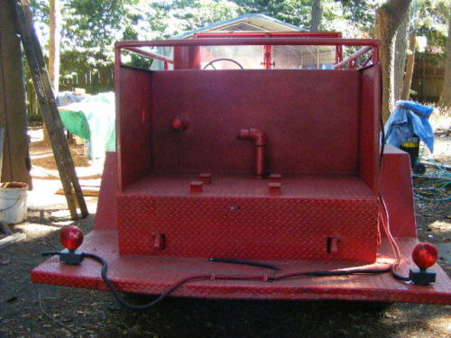 I BELIEVE IT TO BE A 500 GALLON TANK.NO PUMP OR LINE REEL. BUT ALL OTHER PLUMBING IN PLACE. SHOULD WORK WITH NEW SMALL ENGINE PUMP AND HOSE.