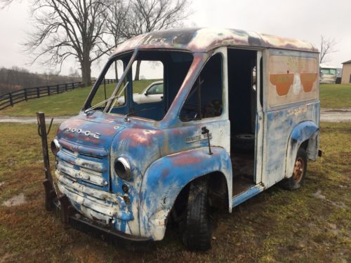 Up for auction is a 1949 Dodge Route Van. This is a very rare vehicle and will be a great start for a build. Stand out from the crowd with this vehicle as your shop truck, motorcycle hauler, Ice Cream Truck, Pizza Truck, Taco Truck you get the point. Keep in mind this vehicle is 64 years old so is going to need some work. Vehicle is non-running but original 1-Ton Truck 6-Cylinder motor and manual transmission is present. This vehicle has a DeDion Independent Rear Suspension which allows for floor to set very low increasing headroom and allowing a 6’6 man to stand up in the cargo area without hitting his head. Vehicle has no glass and two front tires are no good. Vehicle has two sliding pocket doors. Drivers' seat and post are present but will of course need recovering. Vehicle will roll enough to load on trailer for hauling. Please look very closely at all the pictures and let me know if you have any questions and I will be glad to try and answer. Title is clear. Vehicle is also for sale locally and auction could end at any time at owner’s discretion. Not interested in any trades. All sales are final and there are no refunds or returns. Vehicle being sold with no warranty expressed or implied. We are happy to work with buyer and assist with pick-up and loading. Transportation is totally the responsibility of the buyer. $500 non-refundable deposit will be required via PayPal within 24 hours of auction end and remaining balance required within 48 hours. Please don’t bid unless your prepared to purchase the vehicle. Good Luck!
