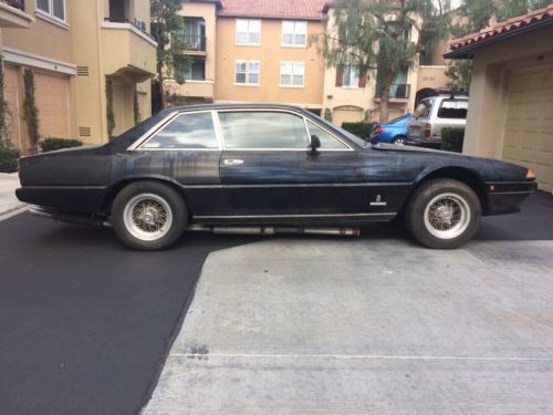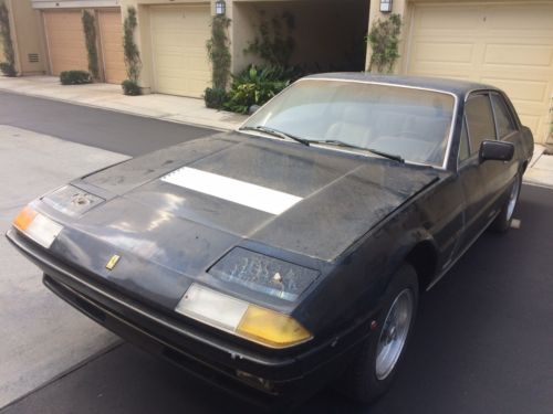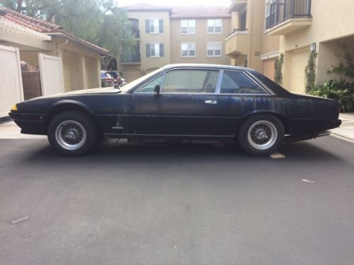 1978 Ferrari 400, Engine and trans out, cams removed from engine. Ferrari's last carburetted front engined V-12. Dry car always in Arizona and California, chassis stored outside for a few years but now garaged. 15x7 Borrani wire wheel conversion kit with bolt on adapters RW4326, State of California Certificate of Title in my name. Title Only, Non-Operable, Registration Deferred status as this car never passed the California smog test when it was running with the previous owner before dissasembly. Sold as-is without warranty expressed or implied. I am very familiar with this era of Ferrari and all parts for assembly appear to be here but please feel free to ask about anything specific.