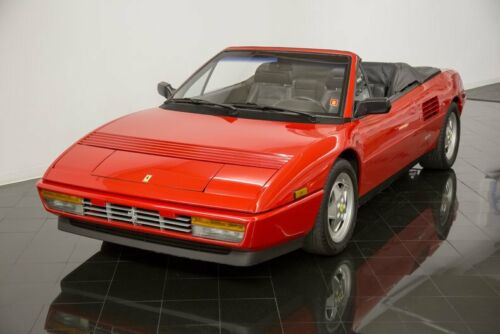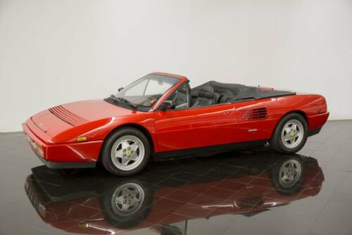 We are proud to offer this outstanding 1989 Ferraro Mondial T Cabriolet finished in popular Rosso Corsa Red over Black Connolly leather interior and matching Black canvass convertible soft top. This eye-catching performance car, for sale in St. Louis, Missouri, is powered by its original 3.4L quad-cam V8 engine and 5-speed gate-shifted gearbox. it continues to impress drivers with 300 horsepower through a limited-slip differential! Options include air conditioning, power windows, power locks, power folding top, Alpine audio system, passenger vanity mirror, 16" alloy wheels wrapped in Goodyear F1 directional radials measuring 205/55R16 up front & 245/50R16 at the rear, carpeted floor mats, and more! This example has been fitted with an upgraded polished stainless steel Tubi exhaust system for added performance and sound!
