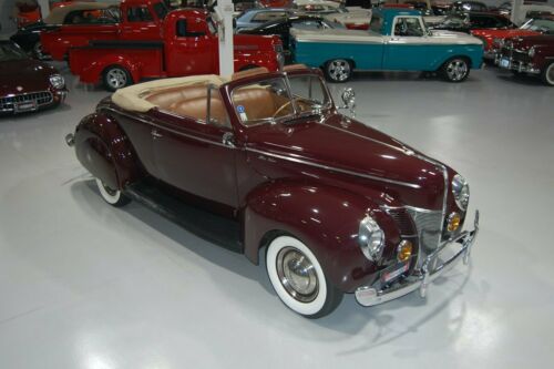 Full size photosHere is a beautifully restored 1940 Ford Deluxe Convertible that has a smooth running and driving Ford flathead V8.The '40 Ford Deluxe was designed by Eugene Gregorie and Mr. Gregorie's design is surely iconic.Serving as a bridge between Ford's Standard base model and its top of the line Lincolns, the Deluxe featured elevated trim which gave it a more elevated look and feel.The conservative Art Deco influenced design on the Deluxe was more streamlined than previous year Fords and the unique grille design made it one of the most beautiful American cars of all time.This particular Ford was owned by the same owner from 1976 through 2019 and the ground up restoration was completed under his ownership.Based on the overall quality and condition of this Deluxe Convertible, it is clear that he meticulously cared for this car.Under the hood on this classic Ford is Ford's famous 24-stud 221 Cubic Inch Flathead V8 engine, otherwise known as the Ford Flatty, that along with the Single 2 Barrel Downdraft Carburetor under an oil bath air cleaner pushed out a whopping 85 horsepower in its day.The Flatty is mated up to a 3 Speed Manual Transmission that features a column mounted shifter, marking the first time in Ford's history that Fords had a "3 on the tree" shifter as opposed to the floor mounted shifters in previous year models.The chrome and brightwork on this '40 Deluxe is stellar.The front bumper features bumper guards and optional Amber fog lamps.The Mandarin Maroon exterior paint is in excellent shape and was repainted during the fantastic restoration undertaken by the car's previous long-term owner.This '40 Ford sits on 4 bias ply wide whitewall tires with full wheel covers, and with the rear wheels sitting behind matching fender skirts.The beige power convertible top with glass rear window goes up and down with ease and, when down, rests under a beautiful matching boot.The interior on this 1940 Deluxe Convertible is stellar.The Bench Seats were reupholstered in a beautiful Beige leather giving the car a fantastic period-correct look.The steering wheel, door panels, and dash all look superb and are in a stock configuration.The instrument cluster appears to be stock as well and is equipped with an 100 MPH speedometer, oil pressure gauge, fuel gauge, temperature gauge, and battery level gauge.If you're looking to add one of the most beautiful and iconic American classics to your collection, this well-done 1940 Ford Deluxe Convertible is an excellent choice.Give us a call today!