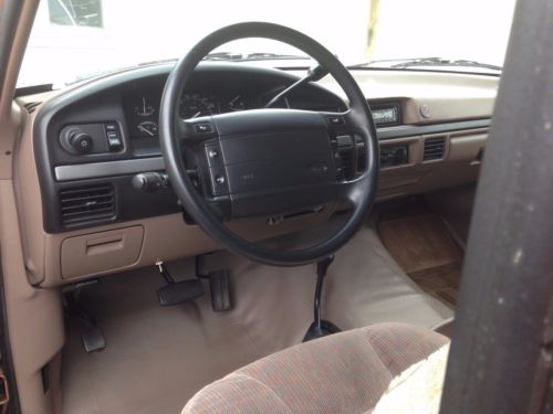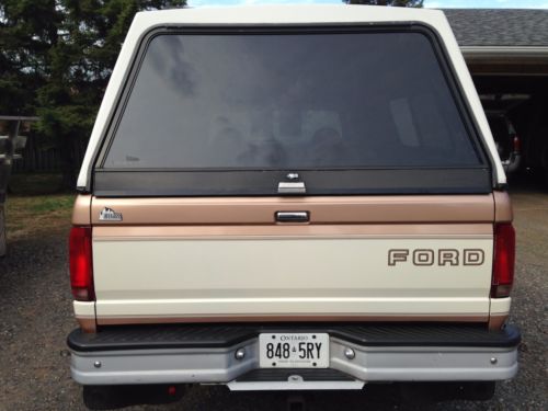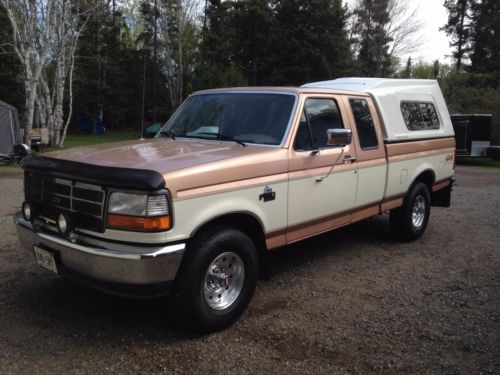 For sale by ORIGINAL OWNER. This excellent condition all original 1994 Ford F-150 XL automatic transmission 4WD truck with manual locking hubs with 5.8 L (351) engine has only 73,160 miles/118,000 kilometers! Truck passed extensive Ontario Vehicle Safety Inspection on June 28, 2017.The interior is in near mint condition with no power windows or locksold school! Dual cloth captains chairs with power lumbar support. Some wear on driver side seat. (see photo)Two-tone exterior with chrome accents is in excellent condition. This vehicle was waxed and oil guarded annually and has not been driven on gravel roads or winter driven.Vehicle is RUST FREE (see underside photos) 100% NON Smoking vehicleThere is some minor paint fading on the bottom of the driver's side extended cab along with a small ding on passenger side roof. (see photo)The truck has dual gas tanks with a very minor leak in rear tank when left full for extended time. The front tank is fine.The truck has original aluminum wheels with brand new Cooper A/T3 tires with no miles on them. Included with truck is fiberglass topper with sliding side windows with screens.Starter replaced and starting relay replaced with new, not rebuiltNew front rotors and pads changed 3 years ago.Exhaust manifold replaced during safety due to small leakEverything else is original.Transmission fluid changed and flushed at 60,000 miles.New fuel filter just installed.Regular oil and filter changes every 3000 miles.A/C works as new.Vehicle is located in Thunder Bay, Ontario, Canada**Buyer must meet seller at Pigeon River Border Crossing near Grand Portage, MN to complete transaction. There are no fees at border for buyer or seller.This great truck will continue to perform for many years!