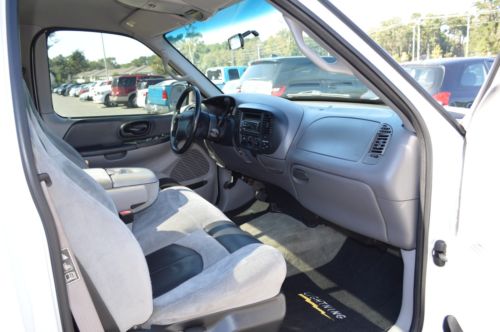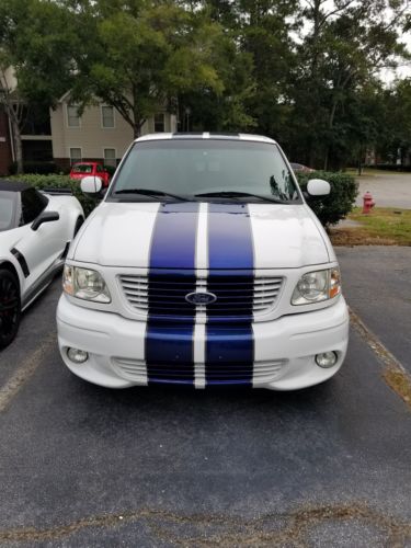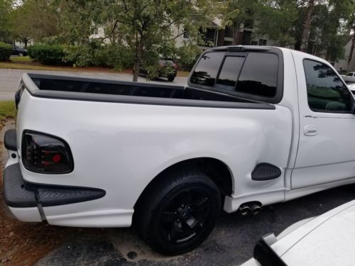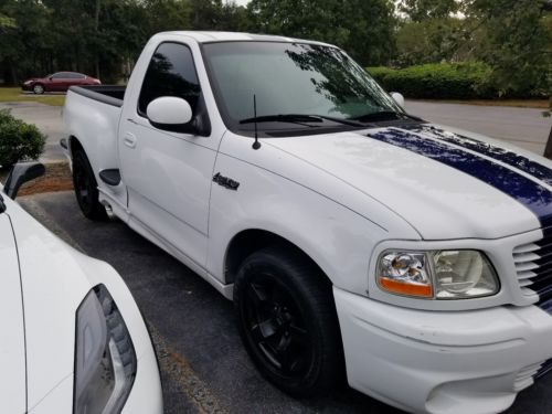 2001 Ford F-150 SVT Lightning Rare White with custom blue painted cobra stripes, only 115,587 miles,auto, a/c, leather, power windows, power locks, tilt, cruise, alloy wheels painted black, sliding rear window, bedliner, fully loaded.