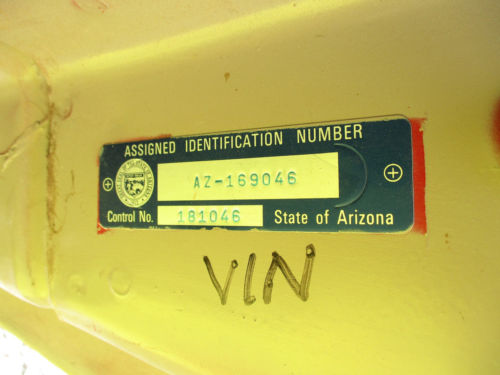 Not sure what the original VIN number was. AZ DMV gave it a new one for some reason, not because it is salvage, I think it is just because it is so old. I just got an offer of $5000 so offers above that please in increments of $500, thank you.