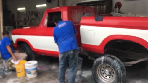 This 1978 F150 has been in the family since 1990, it belonged to my grandfather . I’ve decided last year to restore it and finally let it go. This truck was meticulously painted inside and out. The front panel was replaced with aluminum, and all moldings were restored as well. This F150 has a 302 engine with a new flod four-speed transmission. New exhaust headers were placed in the vehicle. The upholstery was fully replaced to leather. Truck has new carpet, vinyl dashboard, and all glass was fully removed and polished. The AC compressor, connections as well as the AC gauge were newly replaced. This beautiful truck runs great, drives better and it has the strong presence of the Ford F-150. Good to mention, it has never left TXZero rust!