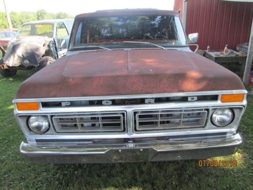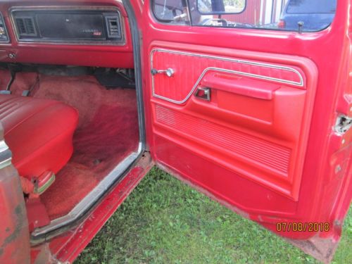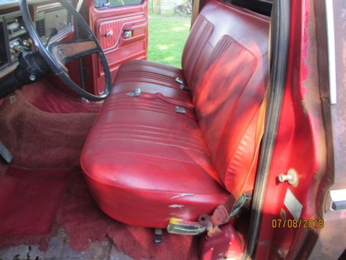 This is a factory 460 half ton truck. I have had this truck for over 20 years, it has sit outside and got surface rust all over it. I drove the truck for a while it ran and shifted fine but after setting outside for years the engine seems to be stuck. There is rust up towards the front of the bed floor plus the rust you can see in the pictures. It needs everything but might be rare enough to rebuild. Good solid frame, front disk brakes, factory air condition, dual gas tanks, intermediate windshield wiper and original candy apple red paint.