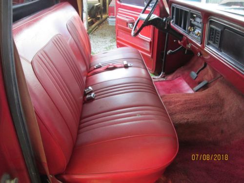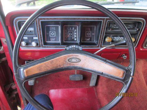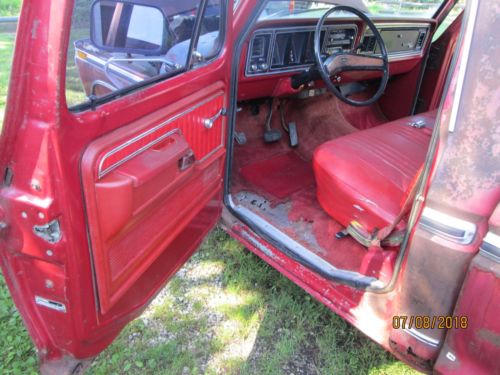 This is a factory 460 half ton truck. I have had this truck for over 20 years, it has sit outside and got surface rust all over it. I drove the truck for a while it ran and shifted fine but after setting outside for years the engine seems to be stuck. There is rust up towards the front of the bed floor plus the rust you can see in the pictures. It needs everything but might be rare enough to rebuild. Good solid frame, front disk brakes, factory air condition, dual gas tanks, intermediate windshield wiper and original candy apple red paint.