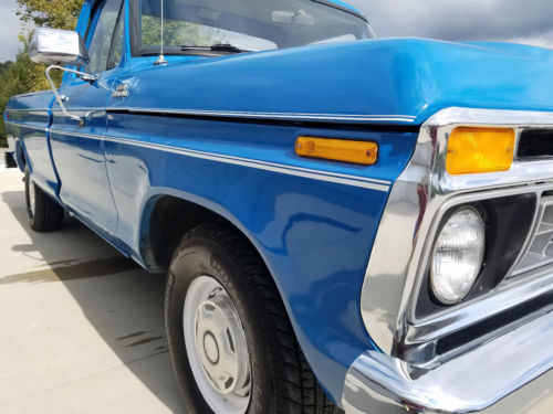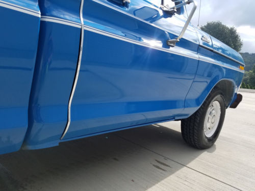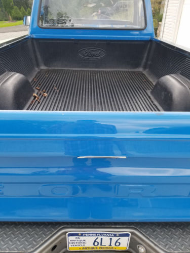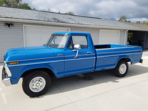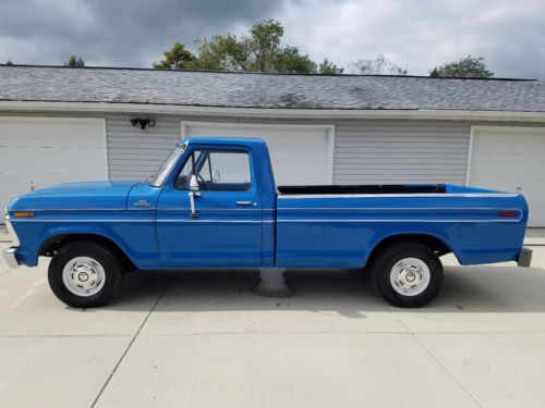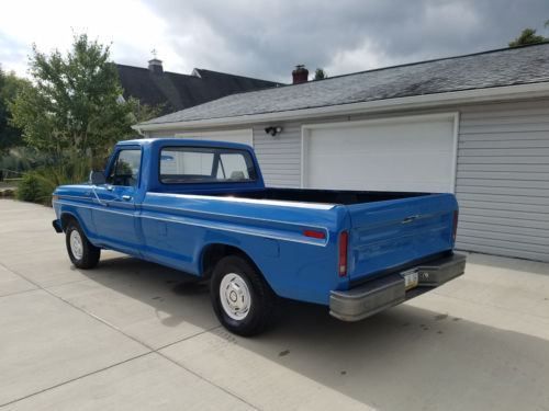 For sale is my 1977 Ford F150 Custom. The truck is in fantastic shape, runs great and gets driven regularly. It is equipped with the original 300 cubic inch inline 6 (famous for reliability) coupled to a 3 speed automatic transmission. It is 2wd with an 8 ft bed and has less than 110,000 miles. It starts right up every time, and performs very well at all speeds (I would never put my kids in anything that didn't). The respray was performed before I bought it in the original blue, and there is no rust. Frame is solid and ready to work and play. Brakes and tires are almost new and everything works with the exception of the new (vintage style with ipod/aux phone hook up) radio. Speakers are new.