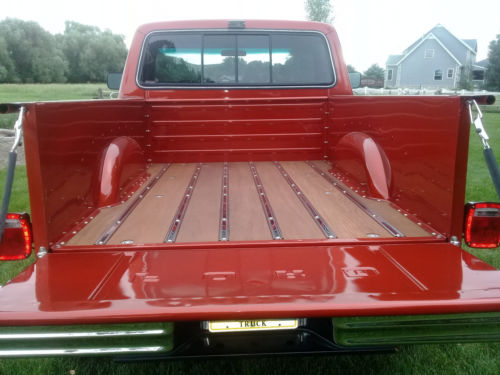 THE EXTERIOR-BODY ,CAB AND BED WERE COMPLETELY DISASSEMBLED AND SANDBLASTED. PAINT IS COPPERHEAD PEARL METALLIC ALONG WITH THE HOODS BOTTOM SIDE. NEW DOORS AND REAR FENDERS. BED HAS A NEW NATURALLY FINISHED EPIE WOOD FLOOR WITH STAINLESS STEEL BARS. NEW GLASS AND RUBBER SURROUND THROUGHOUT.