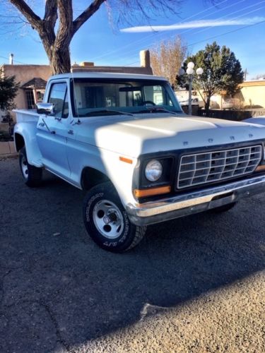1978 Ford F-150 4X4 with V-8 with 351 Windsor 4 speed, headers, dual exhaust, short wheel base, good tires, step side and a new front bumper but it needs a rear bumper. Also has a new aluminum radiator, new battery, new starter, rebuilt carburetor and Accell plug wires. The body is in very good shape for a 40 year old truck with 135,000 miles. There are a few rust spots. The interior is very clean with good carpet, seats, dash and doors. It has a CD player, new speakers and the door locks work. Buyer responsible for shipping.