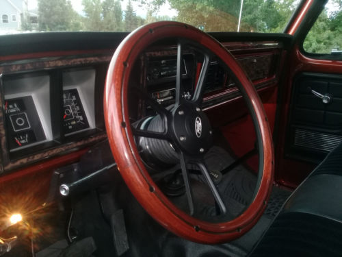 THE INTERIOR - THE COMPLETE INTERIOR HAS ALSO BEEN REDONE WITH MATCHING COPPERHEAD PEARL METALLIC PAINT. NEW BLACK DASH PAD ,BLACK VINYL/ CLOTH BENCH SEAT, MATCHING BLACK DOOR ACCENTS, BLACK POLY HEADLINER WITH 4 SPEAKERS. CUSTOM FORD WOOD-GRAIN STEERING WHEEL. COMPLETE POLY FLOOR COVER WITH SOUND DEADENING AND HEAT INSULATION. THIS TRUCK ALSO HAS NEW UPGRADED WHEELS AND 35X12.50R16LT BFG ALL-TERRAIN -100%TREAD LEFT.