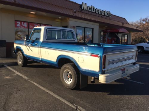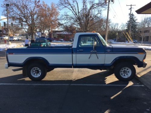 1979 F150 4x4 regular cab long bed. This truck runs/drives amazing with lots of power from the 351 Modified. The 4x4 works great. I got this truck from a middle-man who purchased it from the original owners estate sale. The original options list and owners manual (as seen in photos) are in the glove box! Receipts for a lot of the parts purchased for the motor will accompany the truck. The paint is in great condition and it is the original color scheme however it is not the original paint. The 31/10.50/15 tires are in fantastic shape. The interior is very clean as you can see in the photographs. All the accessories work great. Listed mileage is estimated to be accurate on rebuilt motor (as per previous owner). Both fuel tanks and the fuel tank selector switch work perfectly.